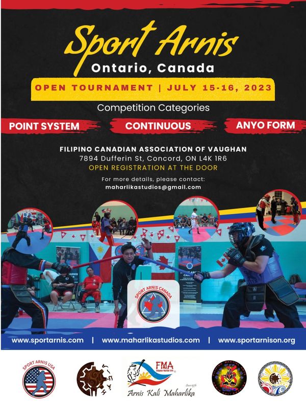 Join us at the Filipino Canadian Association Of Vaughan for the much-anticipated Sport Arnis Canada 2024 Annual Tournament. Witness the incredible talents of Arnis practitioners as they compete in an action-packed day showcasing the power and grace of Filipino martial arts.